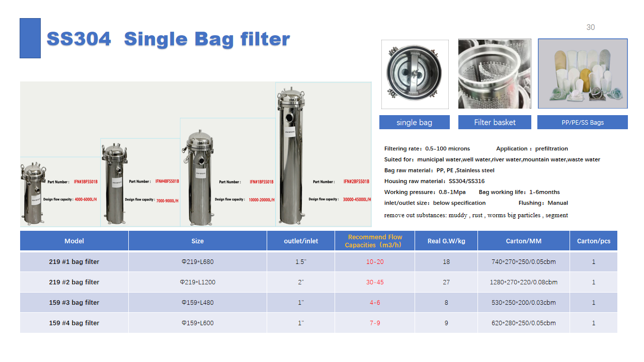 Bag filter is a commonly used filter used to filter impurities in liquids. It consists of a bag  and an external housing, used to collect and remove impurities from the liquid.