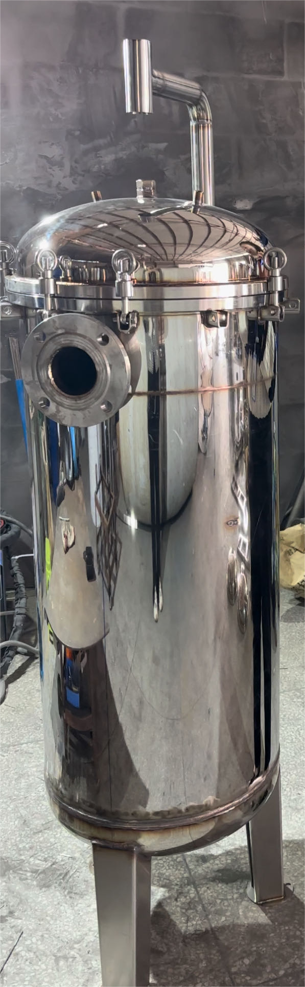 First,the liquid enter into the housing from the inlet,which may placed in the side or on the top,and then flow into the filter bag which is braced by basket.Due to the impact pressure of fluid,the bag will extend and the liquid get evenly filtered through the bag and flow out of the outlet. Impurities are trapped in the bag,the filtration process is complete.